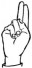 На ћирилици написано ЈУГОЉУБ ГЛАВОЊИЋ састоји се из 15 слова [?]. Исписано ћириличном једноручном азбуком за глувонеме: